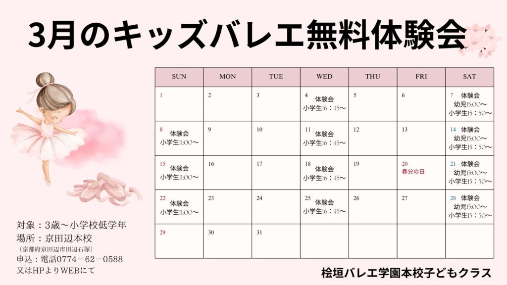 桧垣バレエ学園 3月レッスンスケジュール